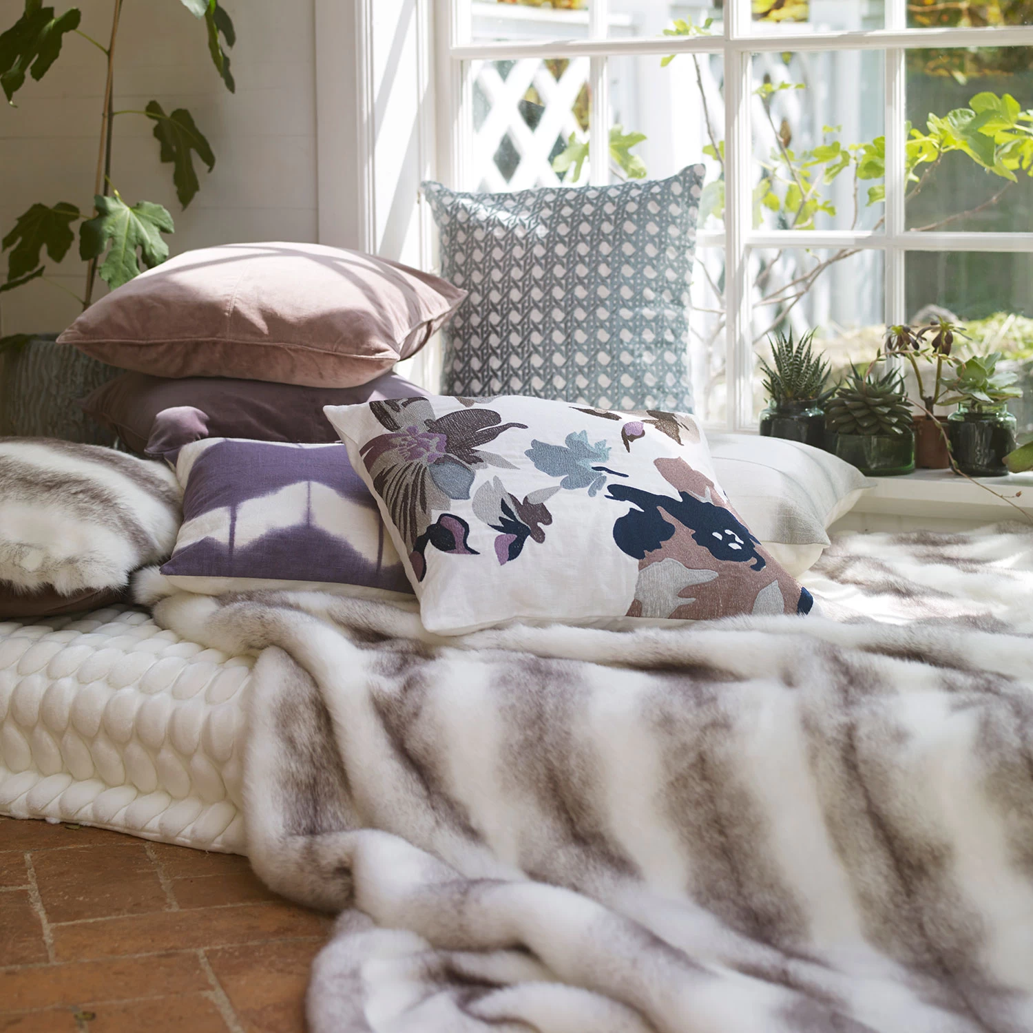 – Combineer de plaid met een matchende kussenhoes van Ceannis.