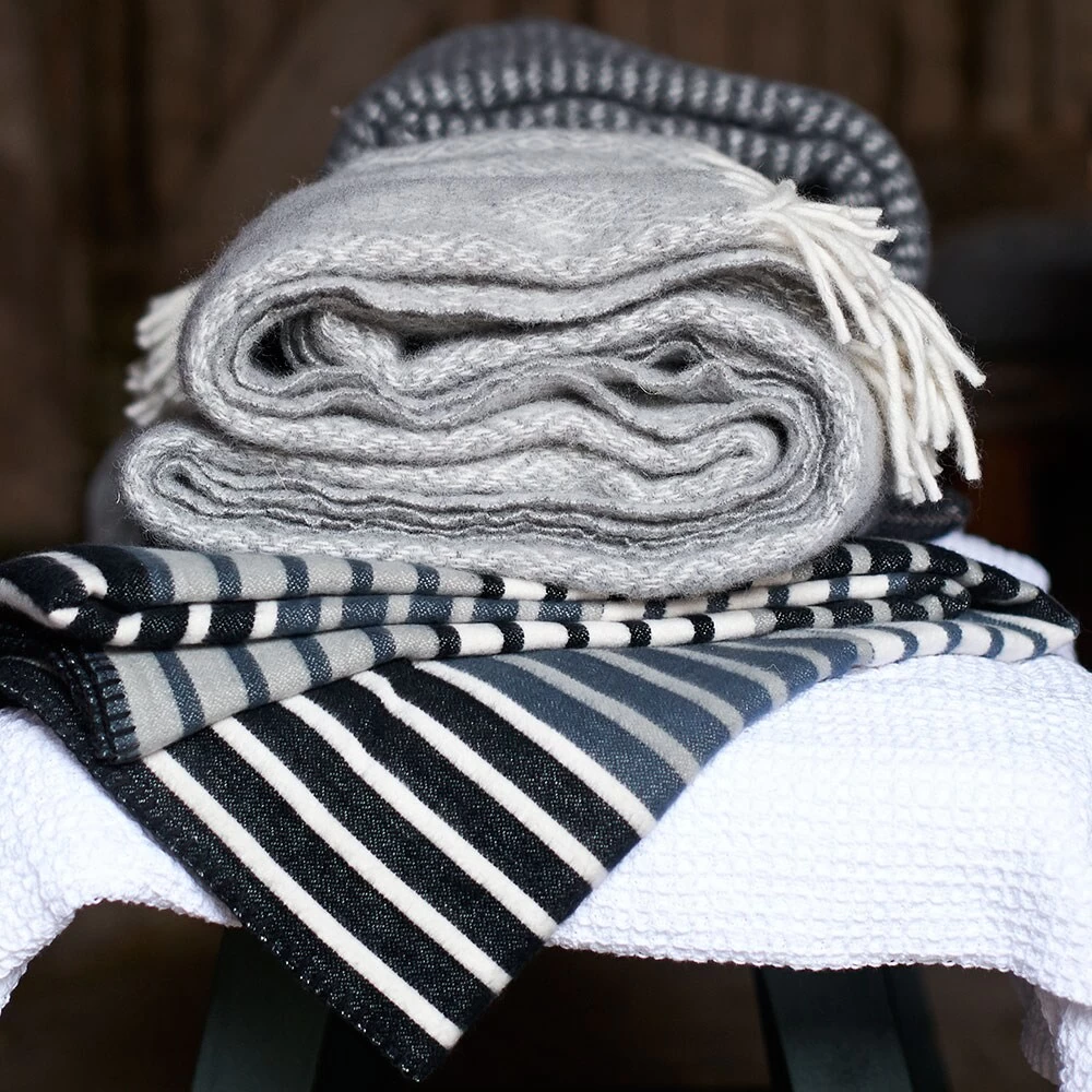 Stella wollen plaid in lamswol van Klippan met een prachtig patroon. Stella is ontworpen door Birgitta Bengtsson Björk. Machinewasbaar op wolprogramma.
