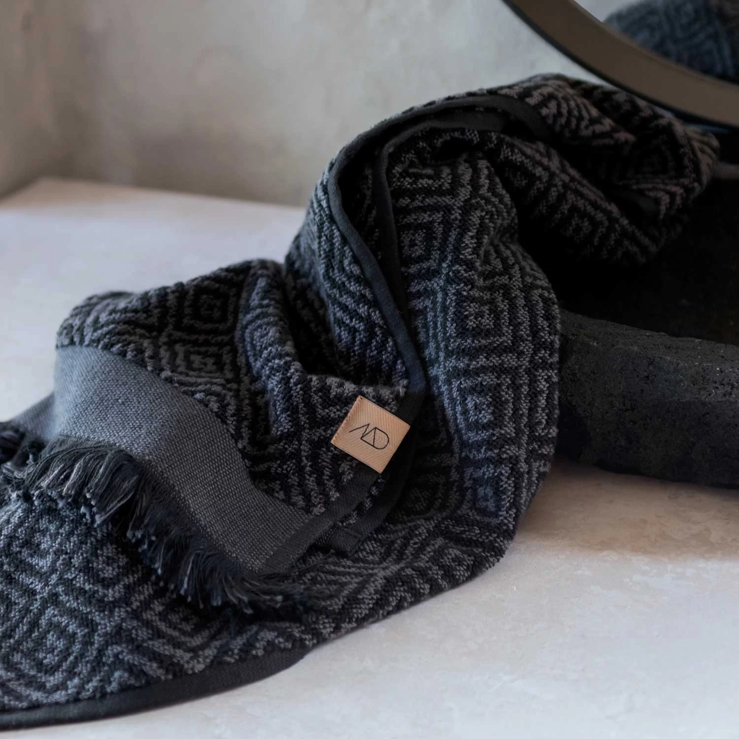 De handdoek Morocco van Mette Ditmer is een zachte en heerlijke handdoek met uitstekend absorptievermogen, gemaakt van 100% oeko-tex gecertificeerd katoen. De handdoek wordt gekenmerkt door een ruitpatroon dat een moderne en tegelijkertijd traditionele uitstraling geeft. Langs de handdoek loopt een delicaat randje met mooie franjes. Aan de ene rand zit ook een stijlvol Mette Ditmer-logo.